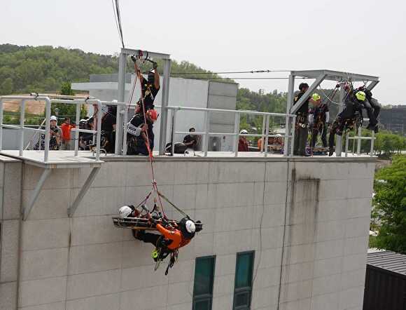 훈련은 구조물 붕괴 유형과 안정화에 대한 이론 교육을 시작으로, 로프 매듭법과 결속 방법, 확보 절차 등 기초 로프기술 실습을 포함해, 제한공간(맨홀, 협소 공간 등) 구조와 구조대상자를 고소 위치로 안전하게 이동시키는 실습 등으로 구성됐다.