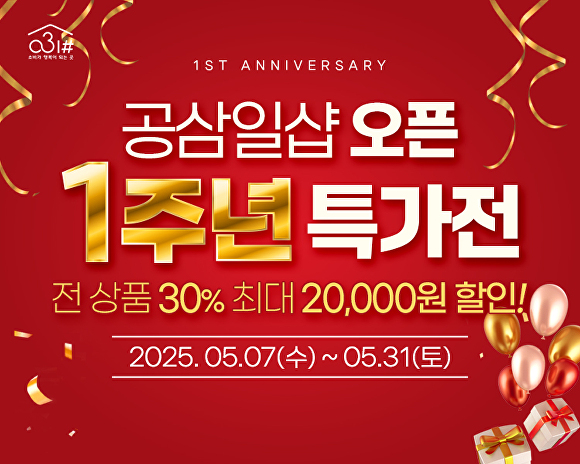 [아이뉴스24 김정수 기자] 경기도와 경기도주식회사가 운영하는 경기도 사회적경제 쇼핑몰 공삼일샵(031#)이 오는 31일까지 오픈 1주년 기념 온·오프라인 할인 기획전을 진행한다.