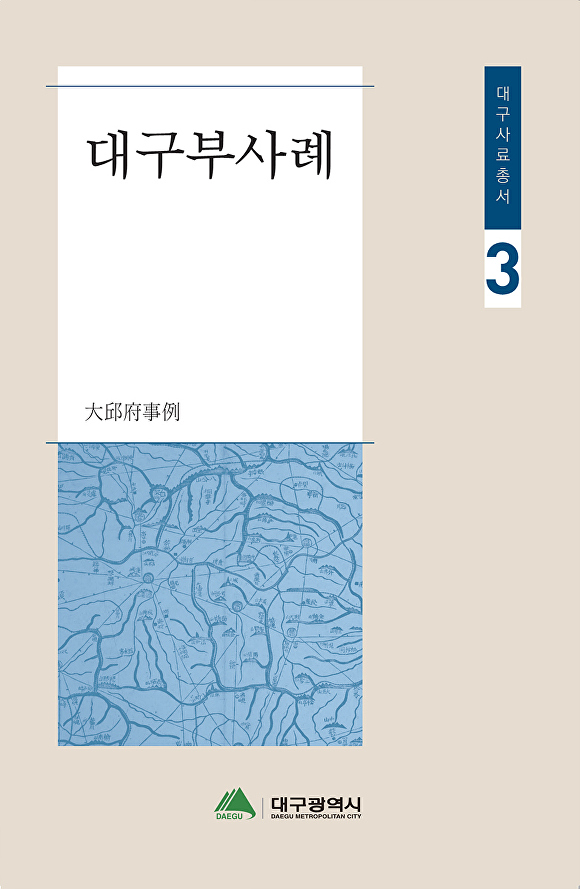 총서 제3권 '대구부사례'는 조선 후기 대구부의 재정 수입·지출 현황과 중앙정부에 납입한 세입 항목 등을 체계적으로 정리한 문서로, 부사 및 실무자들의 행정 참고자료로 사용되던 것이다. 이 자료는 당시 약령시의 약재 가격, 절선(부채) 제작 비용 등 생활상까지 담고 있어, 지역사뿐 아니라 민속·경제사 연구에도 귀중한 자료로 평가된다.