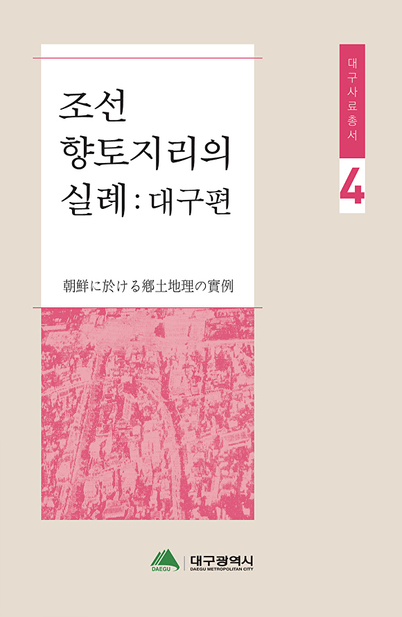 총서 제4권 '조선 향토지리의 실례 : 대구편'은 1933년 대구공립여자고등보통학교(현 경북여고) 교사였던 일본인 다무라 가즈히사가 집필한 것으로, 서구 지리학 관점에서 대구의 지형과 기후, 산업을 처음으로 체계적으로 다룬 연구서다. 특히 이 책에서 ‘대구분지’라는 개념이 처음 등장해 오늘날까지 대구의 지형을 규정하는 핵심 용어로 자리 잡았다.