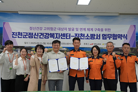 [아이뉴스24 장예린 기자] 충북 진천군정신건강복지센터(센터장 김태우)와 진천소방서(서장 양찬모)가 12일 진천소방서에서 정신건강 서비스 협력을 위한 업무협약을 맺고 정신 건강에 어려움을 겪는 주민을 발굴하고 적절한 치료 서비스 제공과 지원을 약속했다. 세부적으로 △기업체 정보 전달과 기관 연계 △정신 건강사업 안내·참여 독려 △힐링 프로그램 제공 △정신건강 무료 검사(우울·불안·수면) 등을 할 계획이다.