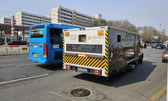 수원시가 시내 도로에 대해 GPR(지표투과레이더) 탐사를 하고 있다. [사진=수원시]