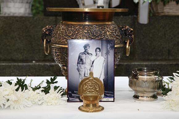 2012년 8월 24일 고 냐야르 대령의 부인 비말라 나야르 영현 합장식 [사진=수성구]