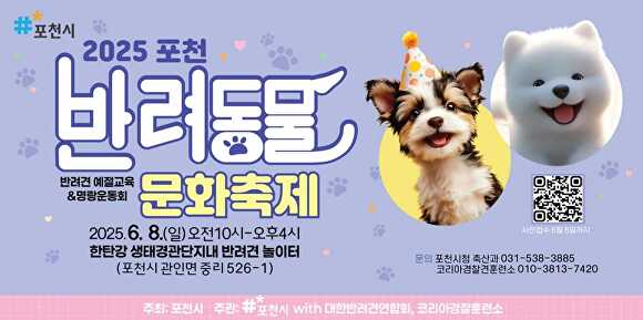 [아이뉴스24 이윤 기자] 경기도 포천시는 내달 8일 한탄강 생태경관단지 내 반려견 놀이터에서 ‘2025 포천 반려동물 문화축제’를 개최한다.