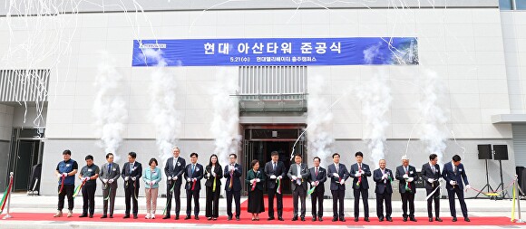 현대엘리베이터는 이날 충주 5일반산업단지 본사에서 ‘현대 아산타워’ 준공식을 열었다.