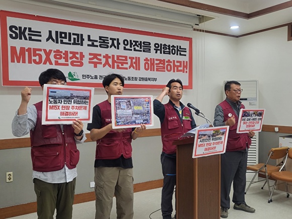 [아이뉴스24 윤재원 기자] 민주노총 플랜트건설노조 강원충북지회가 “SK에코플랜트는 청주 SK하이닉스 M15X 반도체 공장 건설 노동자들에게 주차 공간을 마련하라”고 촉구했다.