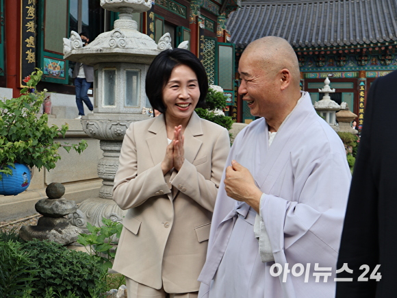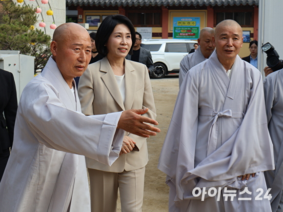 김 여사는 이날 청주시 서원구에 위치한 용화사를 비공개 방문해 용화보전에서 삼배를 올렸다.