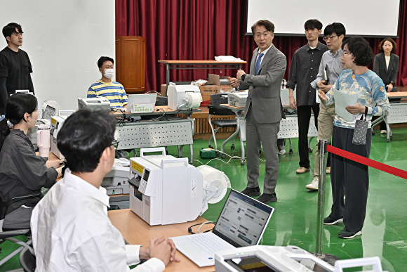 [아이뉴스24 한봉수 기자] 김이강 광주 서구청장이 28일 치평동 5·18자유관 1층 강당에서 '제21대 대통령선거 사전투표소' 설비상황 확인·모의시험 현장점검 등을 하고 있다.[사진=광주시 서구] /광주=한봉수 기자(onda88@inews24.com) 좋아요 응원수 주요뉴스새로고침
