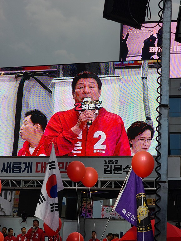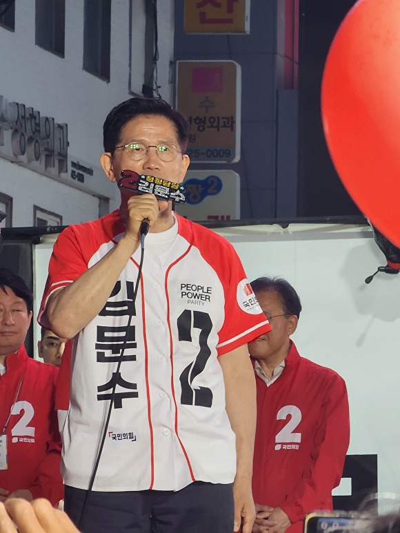 사전투표 독려도 이어졌다. 김 후보는 “사전투표는 부정선거가 아니다. 당이 철저히 감시하겠다”며 “여러분의 한 표가 대한민국 정치를 바꾸고 경제를 살릴 것”이라고 강조했다.