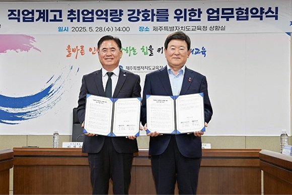 [아이뉴스24 배정화 기자] 제주특별자치도교육청(교육감 김광수)은 28일 제주은행(은행장 이희수)과 직업계고 학생들의 취업역량 강화를 위한 업무협약(MOU)을 체결했다.