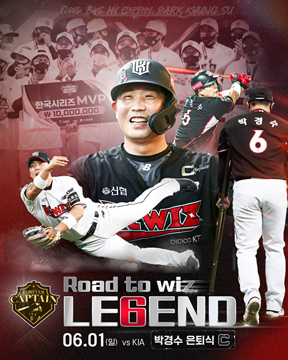 [아이뉴스24 정재수 기자] kt wiz 프로야구단(ktwiz.co.kr)이 다음 달 1일 수원 KT위즈 파크에서 열리는 KIA 타이거즈와의 홈경기에서 지난 시즌을 끝으로 선수 생활을 마감한 ‘영원한 캡틴’ 박경수의 은퇴식을 연다.