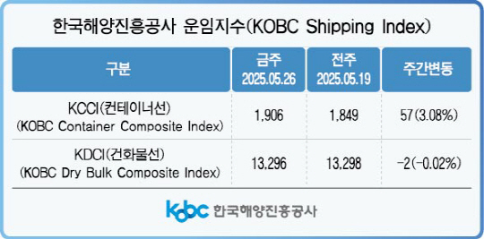 30일 한국해양진흥공사(KOBC)의 부산발 K-컨테이너 해상운임 종합지수(KCCI)는 전주 대비 3.08% 오른 1906포인트를 기록하며 2주 연속 상승세를 이어갔다.