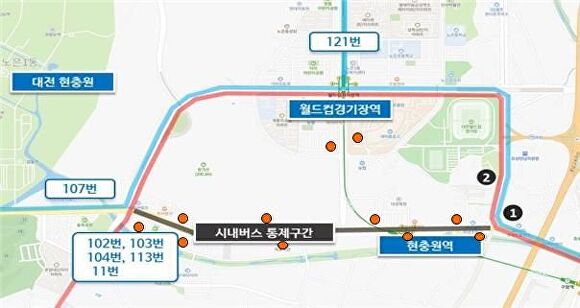 또한 오전 7시부터 오후 2시까지 노은주유소네거리노은터널현충원 구간(2.5㎞)은 임시 버스전용차로로 운영된다. 셔틀버스와 중·대형버스, 행사·긴급차량이 이용 가능하며, 현장 상황에 따라 탄력적으로 운영된다.