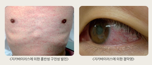증상은 대부분 경미하지만 임신 중 감염되면 소두증 등 선천성 기형을 일으킬 수 있다. 감염 경로는 모기 외에도 성접촉, 수혈, 모자간 수직감염, 실험실 감염 등이 보고되고 있다.
