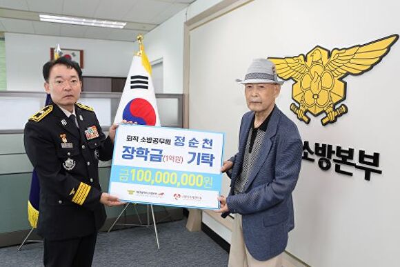 [아이뉴스24 강일 기자] 대전소방본부는13일 퇴직 소방공무원 정순천씨(81)가 순직·공상 소방공무원 자녀를 위한 장학금 1억 원을 기탁했다고 밝혔다.