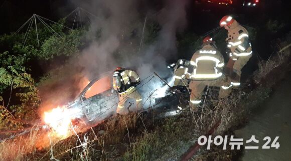 15일 경북소방본부 등에 따르면 이날 오전 3시 38분쯤 영천시 임고면 매호리 한 농로에서 ‘차가 떨어져서 불이 나고 있다’는 신고가 접수됐다.