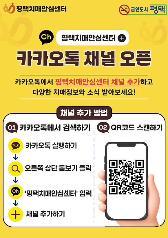 [아이뉴스24 임정규 기자] 경기도 평택는 치매 관련 소식과 정보를 효과적으로 전달하기 위해 ‘평택치매안심센터’ 카카오톡 채널을 이달부터 운영한다고 17일 밝혔다.