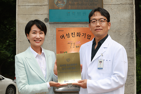 충북도는 전날(17일) 청주 모태안여성병원에서 ‘디지털 임신증명서’ 인증 병원 현판식을 가졌다.