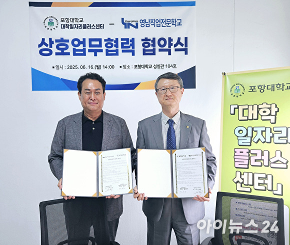 [아이뉴스24 이진우 기자] 포항대학교(총장 하민영) 대학일자리플러스센터는 지난 16일 영남직업전문학교와 상호 업무협력 협약을 체결하고, 지역 청년들의 취업 활성화를 위한 협력체계를 구축했다.