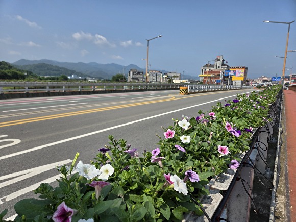 [아이뉴스24 이창재 기자] 경북 성주군 성주읍은 지난 17일 도심 미관 개선과 주민 정서 함양을 위해 성산교 난간 양방향에 사피니아 꽃화분 400여 개를 설치했다고 18일 밝혔다.