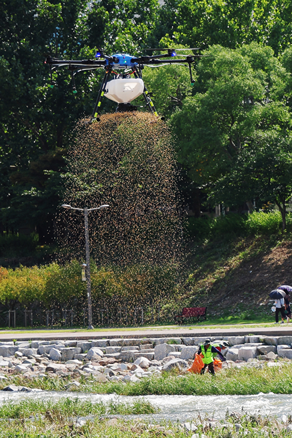 북구는 이번 사업을 통해 차량이나 사람이 진입하기 어려운 하천과 저수지 등에서 모기 유충 서식지를 집중 방제할 계획이다. 방역 대상지는 팔거천을 비롯해 서리지, 운암지 생태수변공원 등 주민 이용이 많은 장소로, 9월까지 열흘 간격으로 총 25회 방역이 이뤄진다.