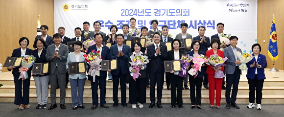 [아이뉴스24 정재수 기자] 경기도의회는 지난 26일 도의회 대회의실에서 ‘2024년도 경기도의회 우수 조례 및 연구단체 시상식’을 열고 지난 한 해 동안 우수한 조례를 입안한 의원 30명과 실적이 뛰어난 연구단체 4개를 선정해 시상했다.