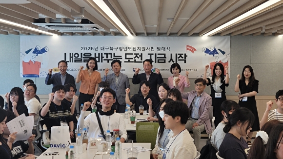 [아이뉴스24 이창재 기자] 대구 북구청(청장 배광식)은 지난달 30일 산격3동 복합커뮤니티센터에서 ‘2025년 대구 북구 청년도전지원사업’ 중기2기 발대식을 개최했다고 1일 밝혔다.