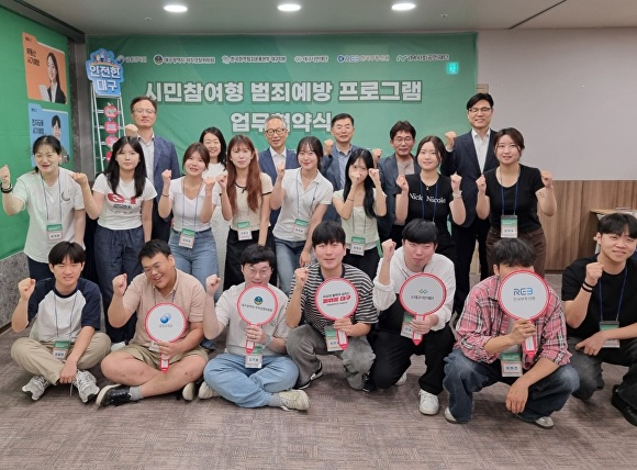 [아이뉴스24 이창재 기자] 대구광역시 자치경찰위원회(위원장 이중구)는 지난 3일 중구 대구스테이션센터에서 금융감독원 대구경북지원, (사)대구시민재단, 한국마약퇴치운동본부 대구지부, 한국부동산원, iM사회공헌재단과 함께 시민참여형 범죄예방 프로그램 운영을 위한 업무협약을 체결했다.