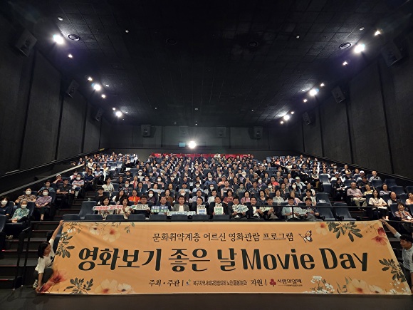 ‘Movie Day’는 문화소외계층인 어르신들에게 문화예술 향유 기회를 제공하고 일상의 활력을 불어넣기 위한 행사로, 북구지역사회보장협의체 노인분과가 주관하고 대구사회복지공동모금회의 후원으로 마련됐다.