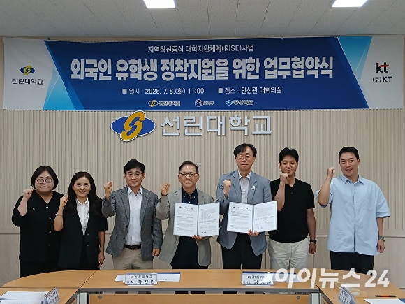 [아이뉴스24 이진우 기자] 선린대학교(총장 곽진환)와 KT 경북동부지사(지사장 김종훈)는 8일 인산관 1층 대회의실에서 외국인 유학생의 조기 정착과 통신편의 지원을 위한 업무협약(MOU)을 체결했다.
