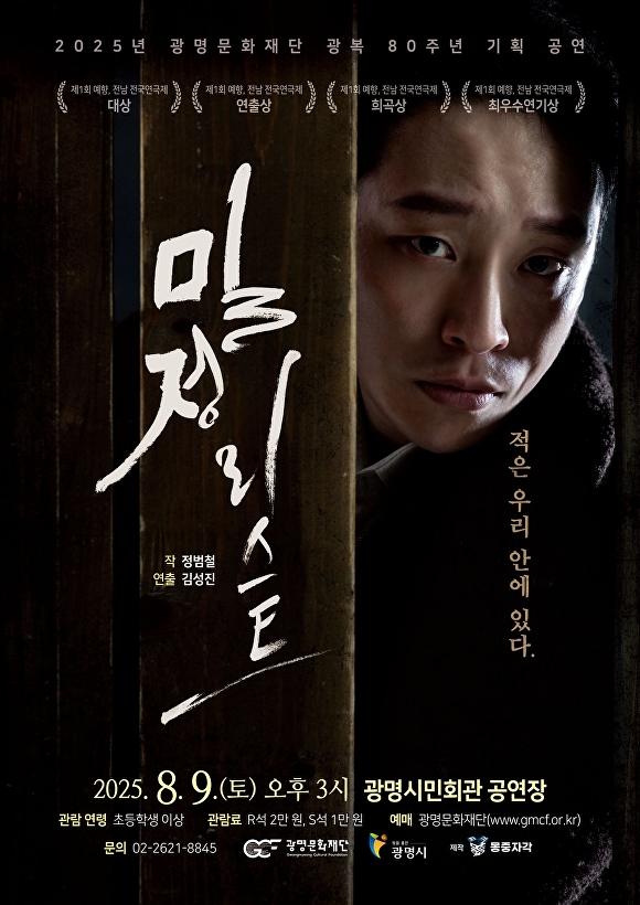 [아이뉴스24 정재수 기자] 광명문화재단은 광복 80주년을 맞아 기획 공연으로 연극 '밀정리스트'를 다음 달 9일 광명시민회관에서 선보인다고 11일 밝혔다.