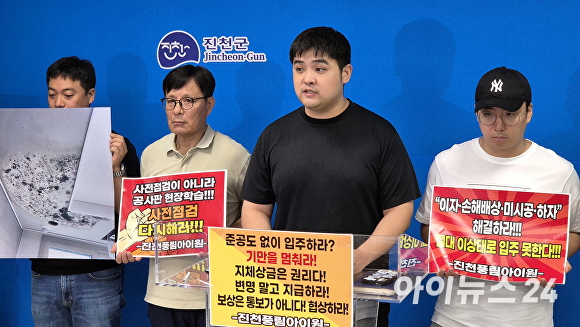 진천 풍림아이원 트리니티 아파트 입주예정자협의회는 이날 진천군청에서 기자회견을 열어 “1년 9개월째 지연되는 입주 문제와 반복되는 하자 발견으로 고통이 이어지고 있다”며 “입주 예정은 지난 2023년 10월이었으나, 아직까지도 사용승인이 나지 않았고, 여전히 무기한 연기된 상태”라고 밝혔다.
