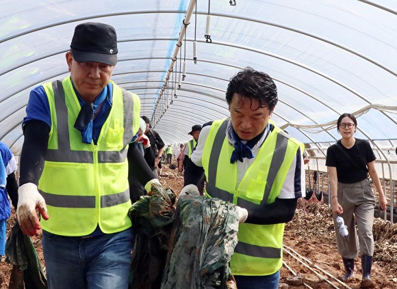 이들은 폭우로 농작물과 재배시설에 심각한 피해를 입은 신암면 일대에 투입돼 파손된 시설물과 잔해를 정리하며 복구에 구슬땀을 흘렸다.