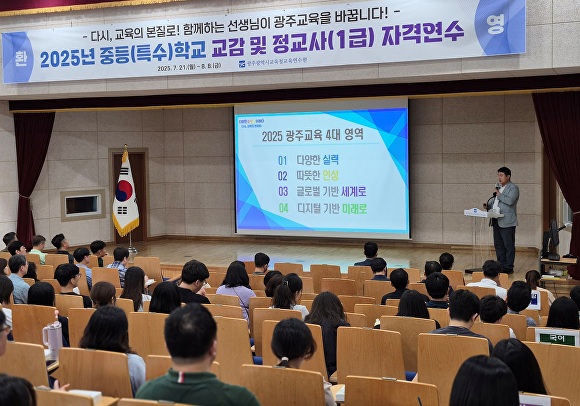 [아이뉴스24 한봉수 기자] 광주광역시교육청교육연수원(이하 광주교육연수원)은 21일부터 오는 8월 14일까지 본원 다목적실 등 8곳에서 ‘2025년 하계 정교사(1급) 및 교감 자격연수’ 과정을 운영한다.