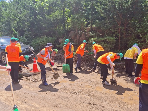 이들은 현장에서 토사 제거, 도로 정비, 방역 지원 등 실질적인 복구 작업을 수행했으며, 굴삭기 등 중장비 8대와 생수 9,600병(물맑은 양평수)을 포함한 물적 자원도 함께 지원했다.