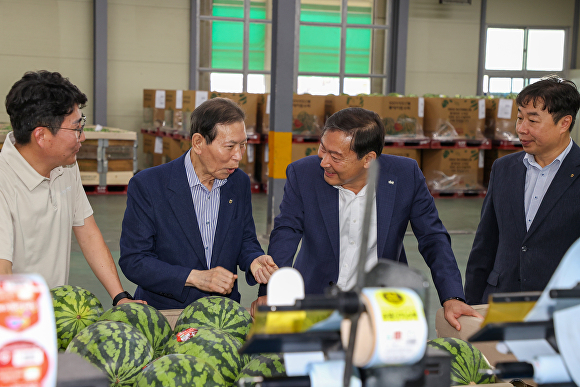 더불어 성 출하기에 앞서 선별장을 찾은 수박 재배 농가들과 의견을 나누고 애로사항을 청취하는 시간을 가졌다.