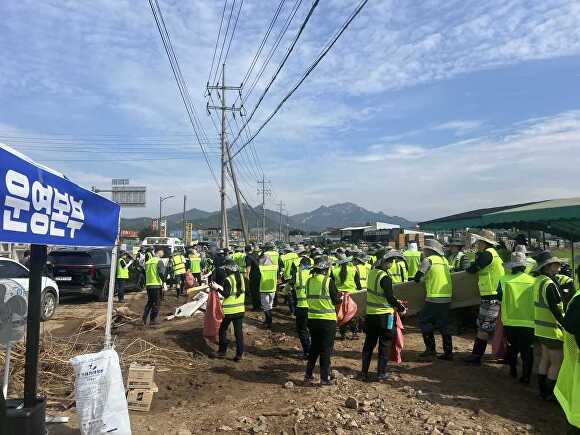봉사자들은 조종면 현리의 포도농장을 방문해 △침수 피해 농가의 토사 제거 △쓰레기 정리 △시설 복구 등 긴급 복구 작업을 도왔다.