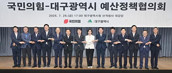 김정기 대구시장 권한대행 행정부시장은 25일 오후 대구시청 산격청사 대강당에서 이인선 국민의힘 대구시당 위원장을 비롯한 지역 국회의원들과 함께 ‘국정과제화 추진사업 및 2026년도 국비 확보’를 주제로 예산정책협의회를 개최했다.