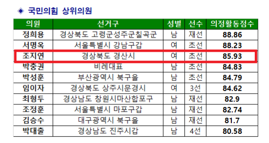 특히 국민의힘 소속 의원 중에서도 상위 3위에 오르며 높은 의정 성과를 인정받았다.