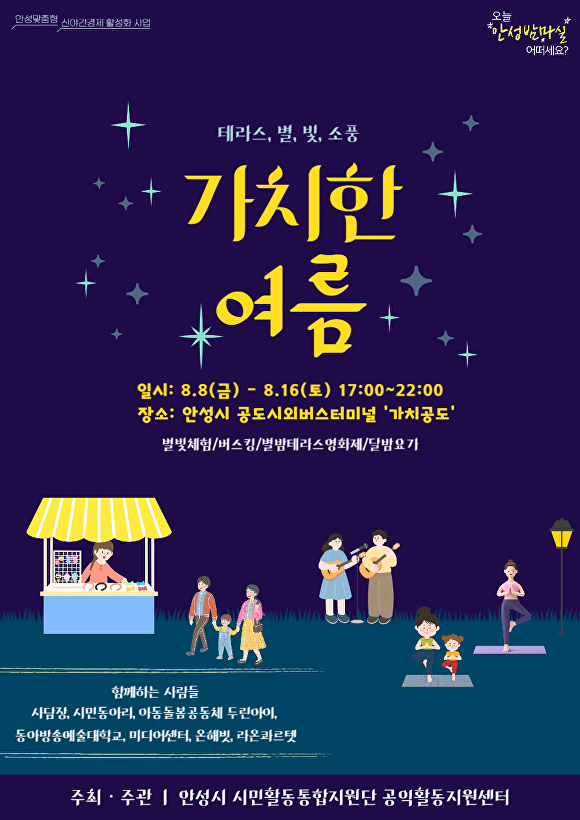 [아이뉴스24 임정규 기자] 경기도 안성시가 시민들의 여름밤을 다채롭게 수놓을 야간 문화 행사 '가치한 여름: 테라스 별 빛 소풍'을 개최한다고 29일 밝혔다.