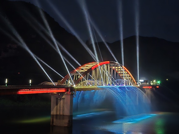 3일 단양군에 따르면 고수대교 경관분수는 남한강을 배경으로 물줄기와 조명, 음악이 어우러져 관광객들에게 시원한 볼거리를 제공한다.