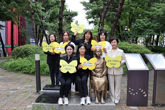 여성위원들은 각 지역의 평화의 소녀상을 찾아 헌화와 묵념, 기념사 낭독 등의 프로그램을 이어간다.