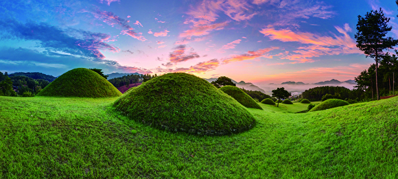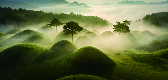 전시작품은 7개 가야고분군과 고대 동시기에 존재했던 일본의 모즈·후루이치 고분군의 풍경을 생생하게 담아내 동아시아 고분 문화의 다양성을 구성했다.