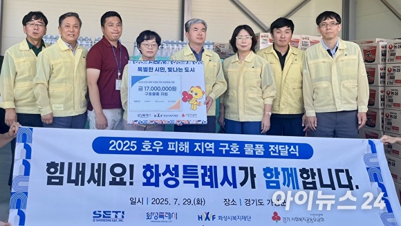 [아이뉴스24 김장중 기자] 경기도 화성시복지재단과 ㈜신성이엔티가 최근 큰 비로 피해를 입은 가평군을 돕기 위해 1000만원 상당의 구호물품을 전달했다고 5일 밝혔다.