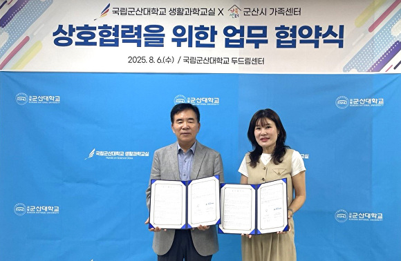 [아이뉴스24 박종수 기자] 국립군산대학교 새만금창의융합센터는 6일 두드림센터에서 군산시 가족센터와 지역사회의 과학 문화 확산과 다문화, 가족 친화 프로그램 운영을 위해 업무협약을 체결했다.