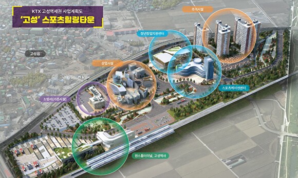 고성은 남부내륙철도가 개통이 되면 수도권과 2시간대 생활권으로 KTX고성역세권을 중심으로 스프츠힐링타운과 스마트 정주환경을 융합한 미래도시 모델을 구현하고 스포츠힐링타운 조성을 통해 전국 단위 체류형 스포츠 관광 산업 육성 및 지역경제 파급효과가 기대된다.