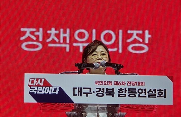 [아이뉴스24 이창재 기자] 국민의힘 정책위원회 의장을 맡고 있는 김정재 의원(포항북구)이 8일 엑스코에서 열린 국민의힘 제6차 전당대회 대구경북 합동연설회 이재명 정부를 강하게 비판하며 “보수의 힘으로 정권 폭주를 막아내자”고 호소했다.