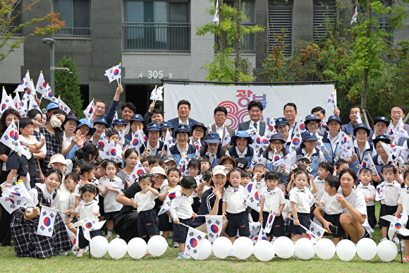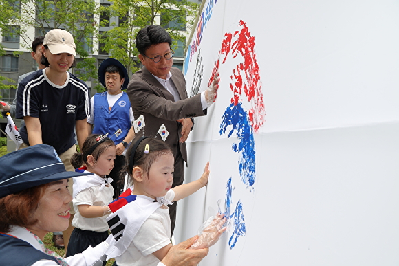 행사는 손도장 찍기 등 주민 참여 체험 프로그램으로 시작해, 도남숲 3단지 어린이집 원아 45명이 ‘태극기’ 동요에 맞춰 손태극기를 휘날리며 퍼포먼스를 선보이며 주민들이 하나 되는 시간을 만들었다.