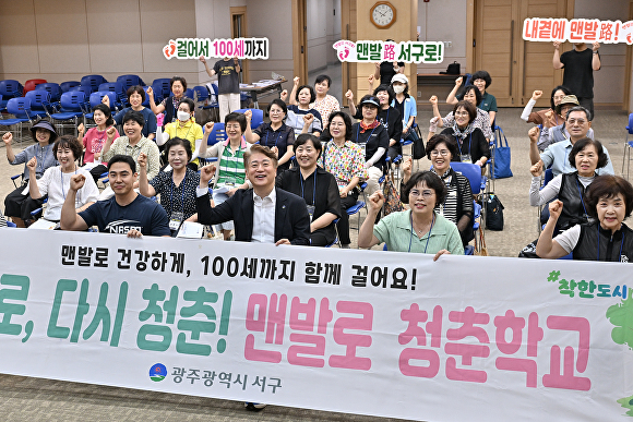 [아이뉴스24 한봉수 기자] 김이강 광주 서구청장이 14일 서구청 들불홀에서 열린 ‘제4기 맨발로 청춘학교’에서 참석자들과 기념촬영을 하고 있다.[사진=광주시 서구] /광주=한봉수 기자(onda88@inews24.com) 좋아요 응원수 주요뉴스새로고침