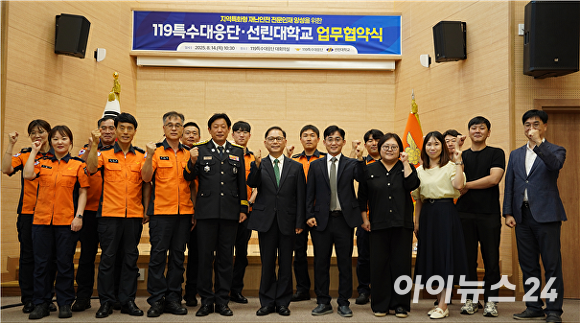 [아이뉴스24 이진우 기자] 선린대학교(총장 곽진환)는 경상북도 119특수대응단(단장 백승욱)과 함께 14일 경상북도 119특수대응단 2층 대회의실에서 재난 대응 능력 향상 및 관·학 협력 강화를 위한 업무 협약식을 개최했다.